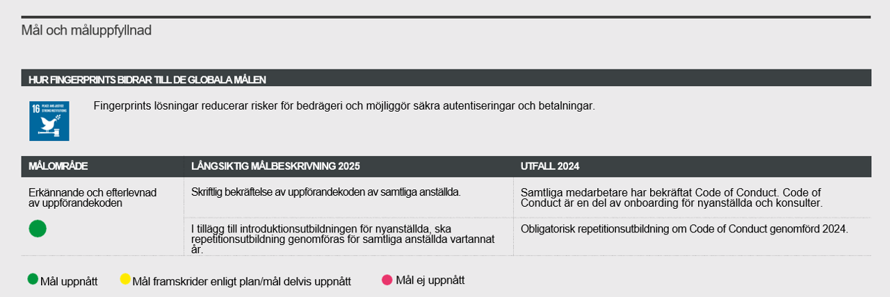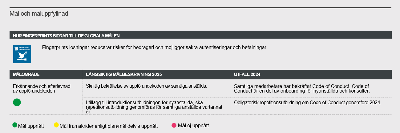 Fingerprints framgång bygger på att verksamheten bedrivs på ett etiskt, transparent och lagligt sätt eftersom vi annars riskerar att förlora anseende hos våra intressenter.
